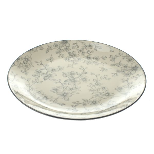 Termék neve: Kerámia tányér Ø 26 cm – szürke virágok, 6/12