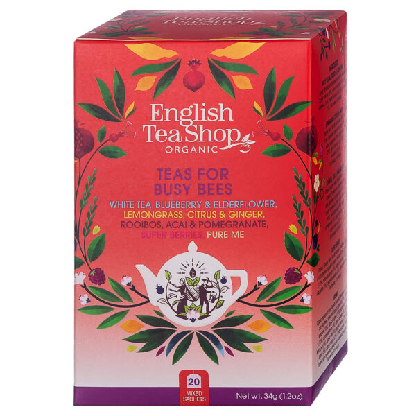 Składniki: Ekologiczny rooibos (59,5 %), ekologiczny miodokrzew (19 %), ekologiczny hibiskus (14 %), naturalny aromat jagód acai (3,5 %), naturalny aromat granatu (1 %), ekologiczny granat (1 %), ekologiczne maliny (1 %), naturalny aromat borówkowy (0,5%), ekologiczne jagody acai (0,5 %).